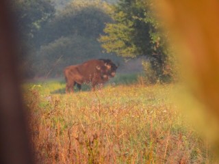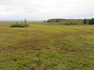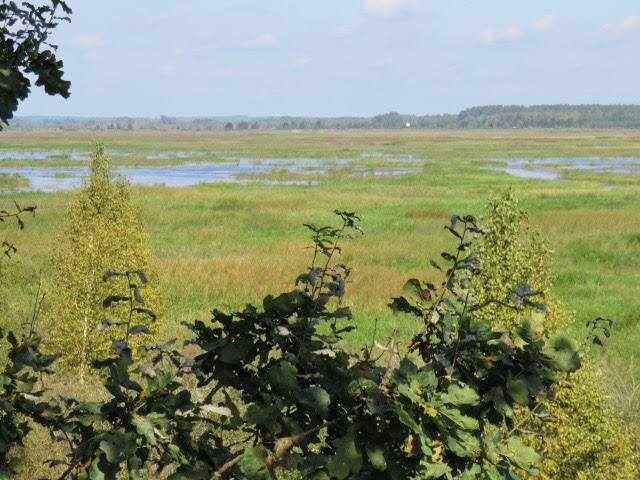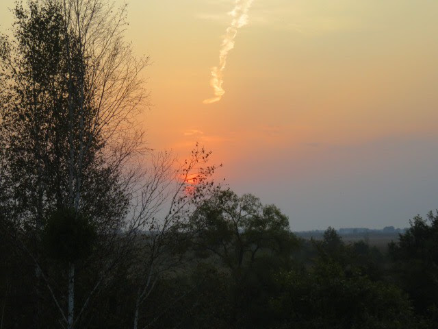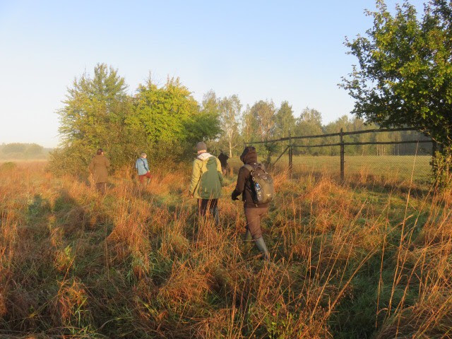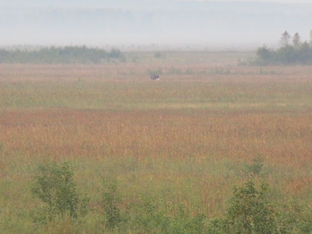 We made one last try this morning to see elk, leaving the lodge at 5:45 a.m. Andrej drove to the nearby viewing platform and we all scanned the marsh to see if any of the animals decided to give us a glimpse. And we were rewarded! Not just one elk, but two, at different times. They were both pretty far away, probably more than a half-mile, but easily spottable in our binoculars and the spotting scope. Here are my photos from the morning. The elk is the small brown dot in the upper third, center of the photo.