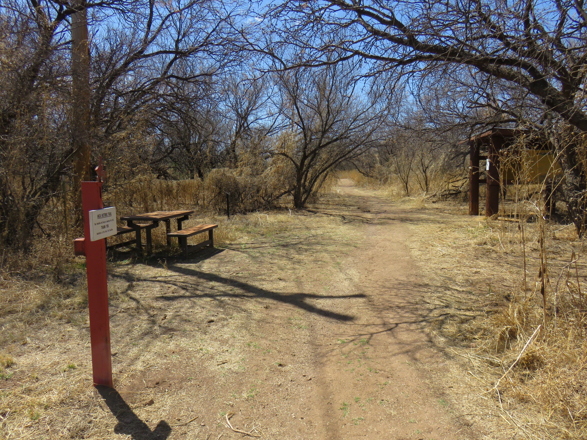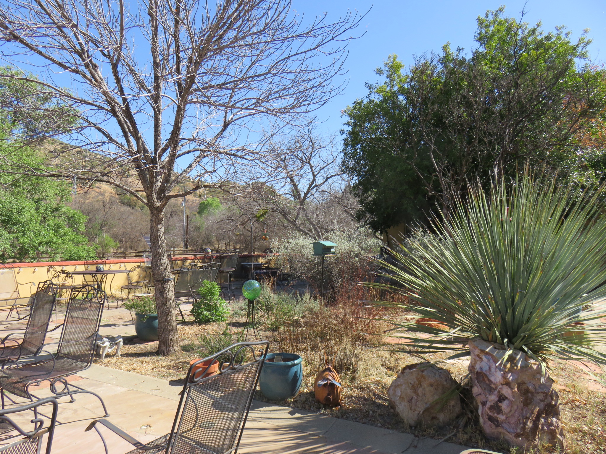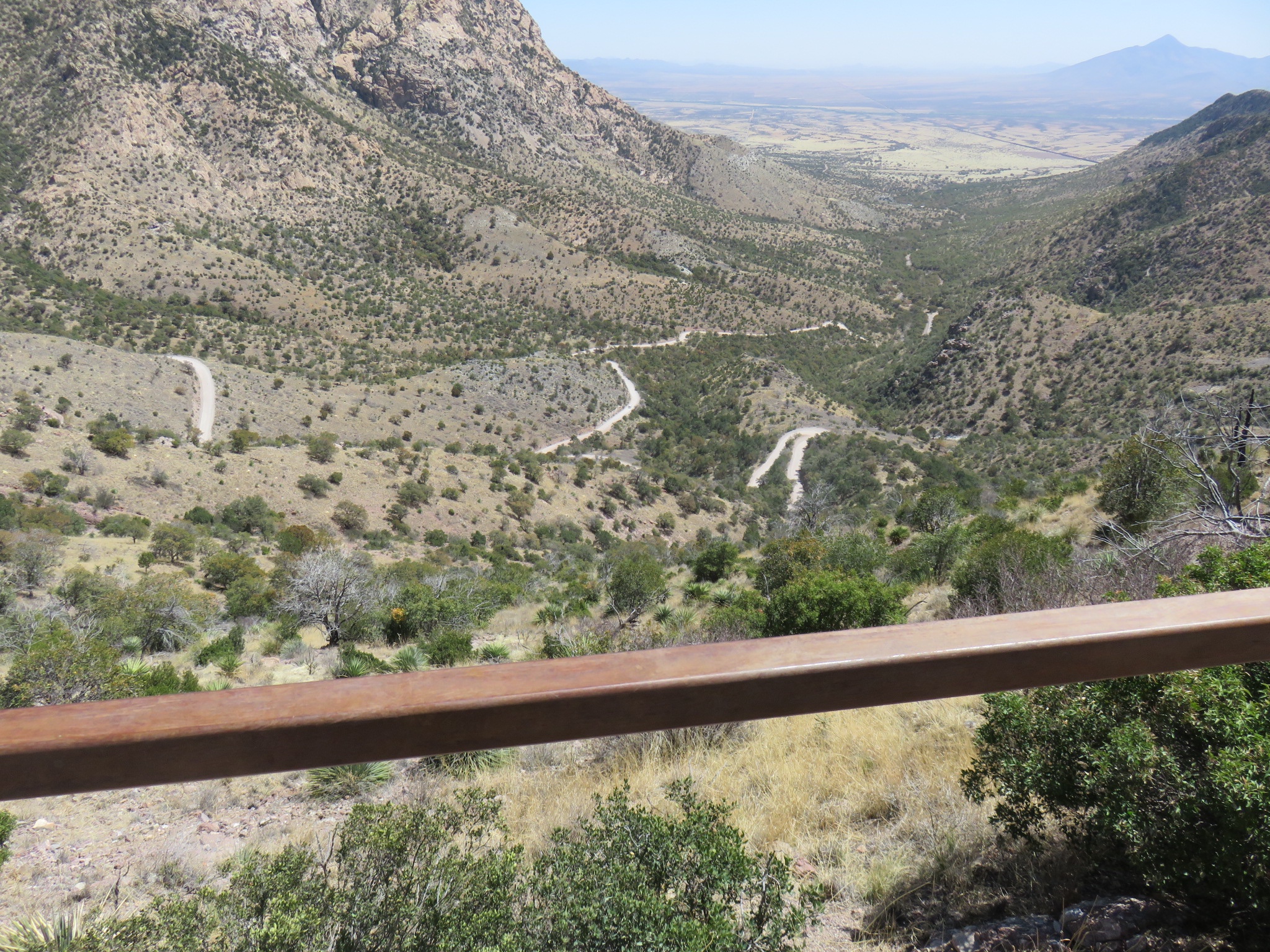 We packed up our things and checked out, noticing a Border Patrol truck with two saddled horses in a trailer just outside the B & B. We drove about 30 minutes to the Coronado National Memorial located at the start of Montezuma Canyon near Hereford. We went into the visitor’s center and walked around the oak and grassland habitat nearby. Then we drove up to Montezuma’s Vista overlook via a narrow, windy gravel road that was about 2 miles long. On the way up, a Border Patrol truck passed us, then when we reached the top, it was preparing to drive back down. We figured the agents had used the overlook to look for immigrants trying to enter the country. The view from the vista was expansive, looking clear into Mexico. It was windy but there were a few birds in the bushes and soaring over the pass.