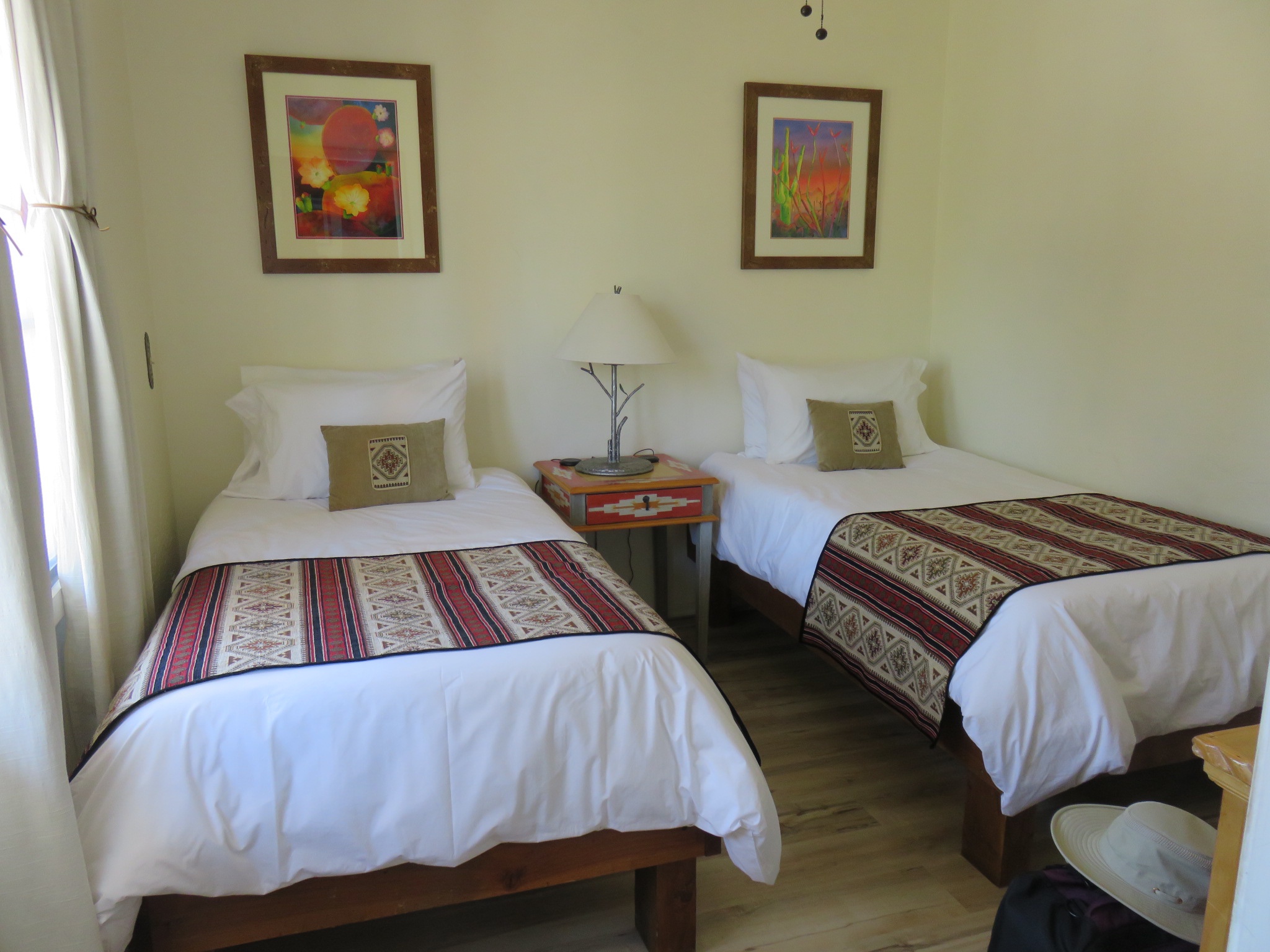 Our hotel for the night was The Tuxon near downtown. It was pretty standard looking from the outside, but modernly decorated on the inside. It was over 90 degrees in town and our room doors and windows faced the afternoon sun. The heavy window blinds were closed to keep the sun out of the windows, but the metal door handles were super hot. The room air conditioning struggled to keep up.