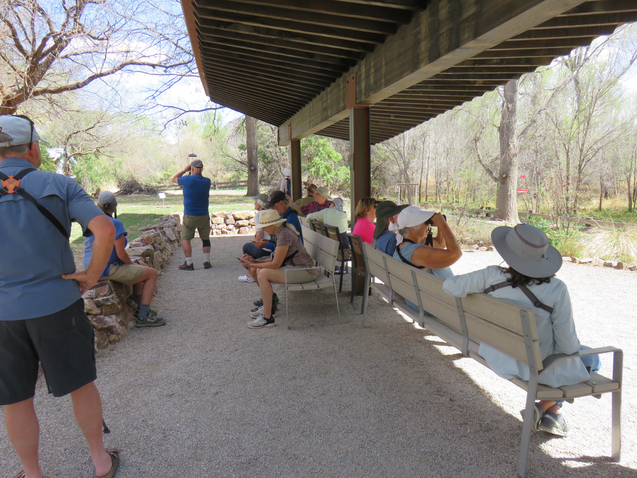 After breakfast, as we were walking around the grounds of the B & B looking for birds, a Border Patrol helicopter made two low passes over us and the cottonwood trees of the San Pedro River, causing the tops of the trees to flail and scaring out a hawk. We had noticed several Border Patrol cars the previous night as we went and returned from Bisbee too.