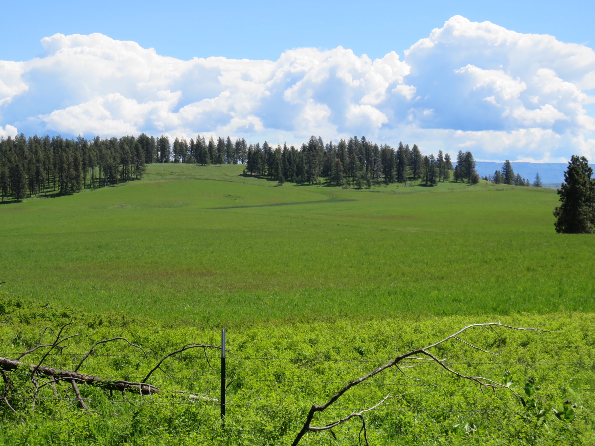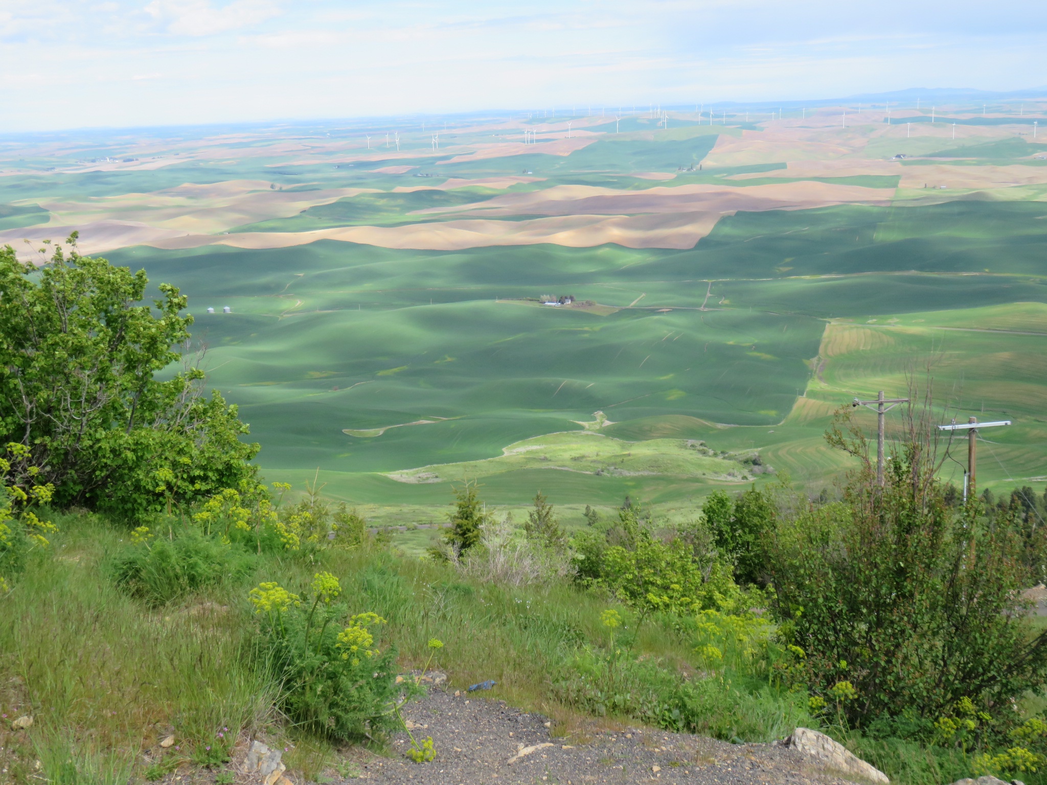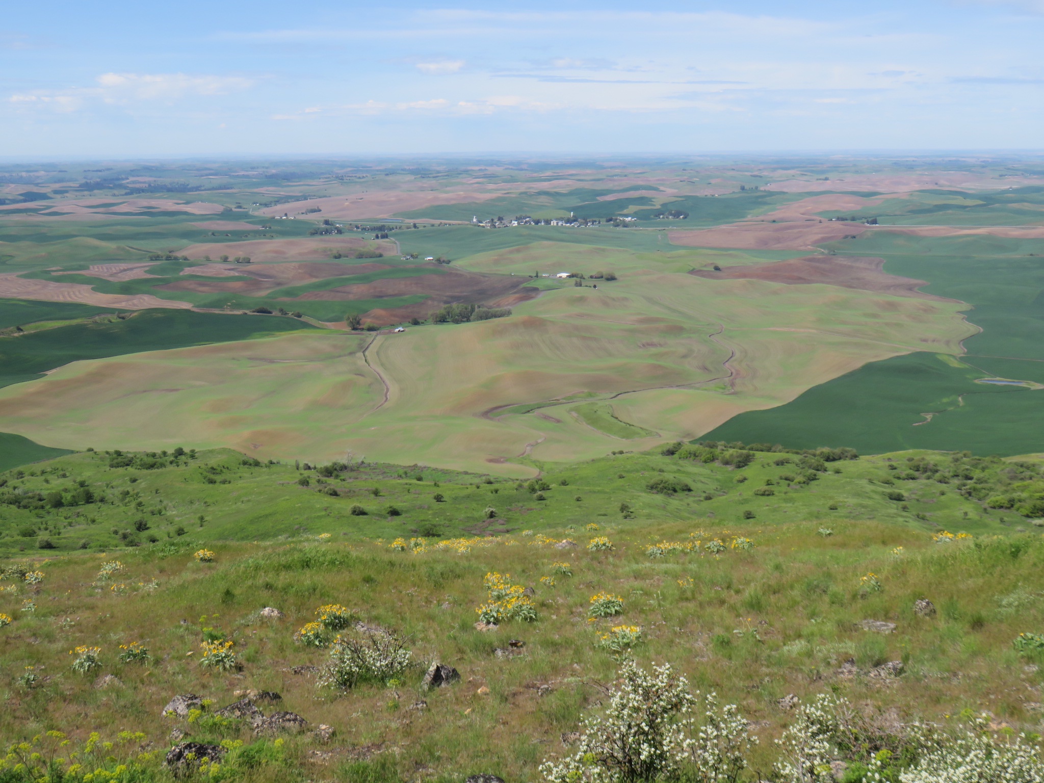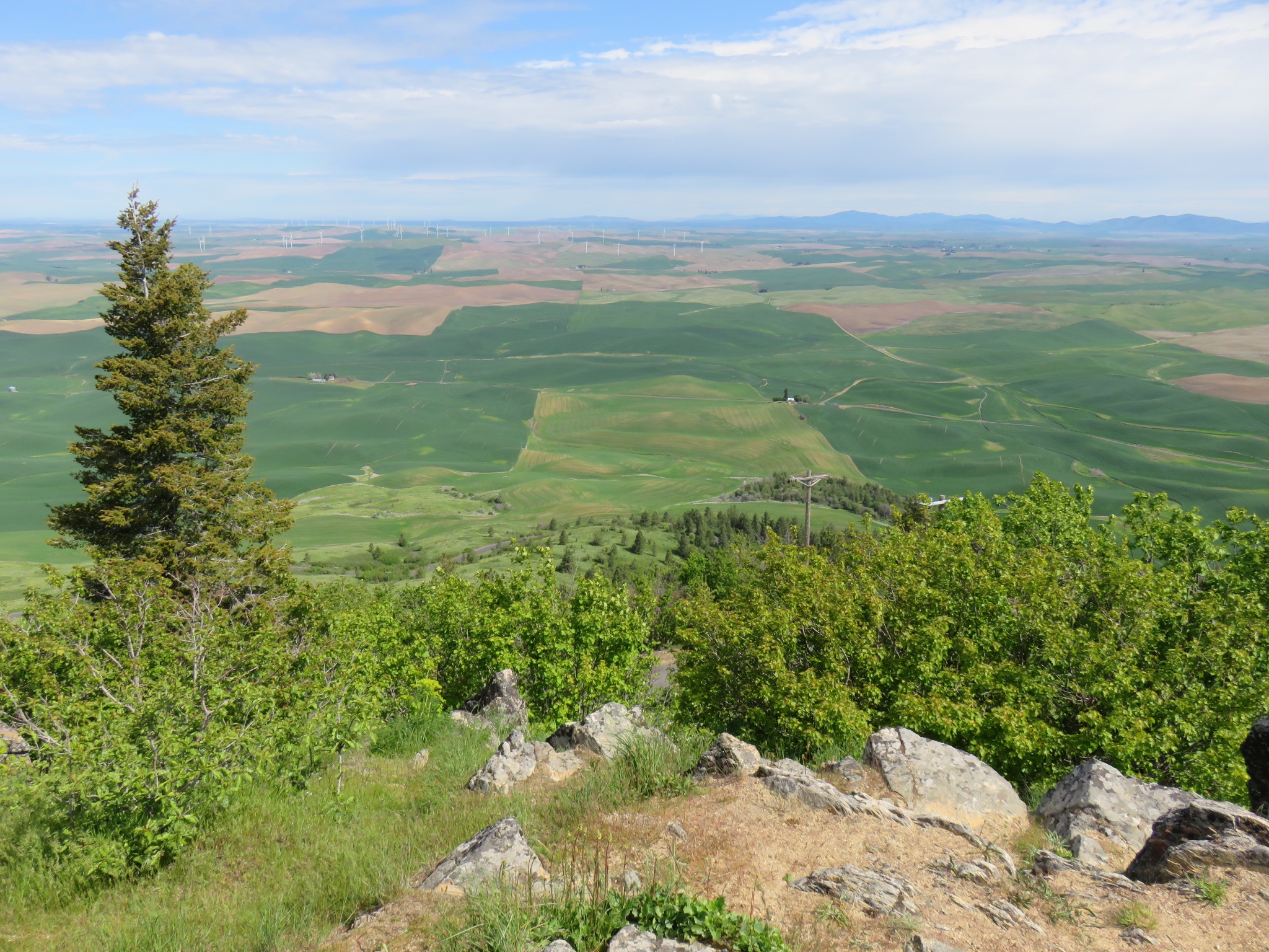 We drove out of Pullman and through more rolling fields of very green winter wheat to reach Steptoe Butte, which towers above the other hills. By the time we got there, the sky was mostly blue and it was another beautiful day in the Palouse.