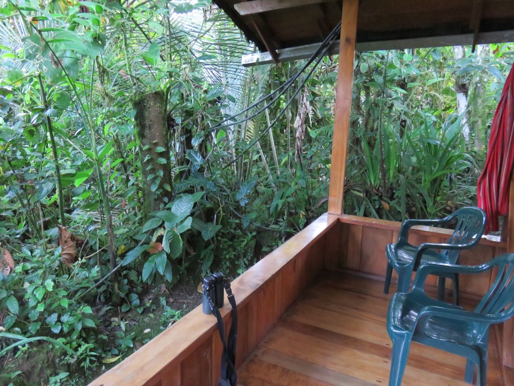 In Mindo, we stopped at the bus terminal to buy tickets for tomorrow’s ride back to Quito. Then we went to a little restaurant for lunch. Nathan had chicken and rice and I ordered a caprese salad of tomatoes and cheese with basalmic vinegar. After lunch we headed back to the cabaña and relaxed on the porch. It began to rain not long afterwards and didn’t stop all afternoon and evening. We didn’t feel like walking to a restaurant in the rain, so we ended up eating protein bars to stave off the hunger pangs ‘til morning.