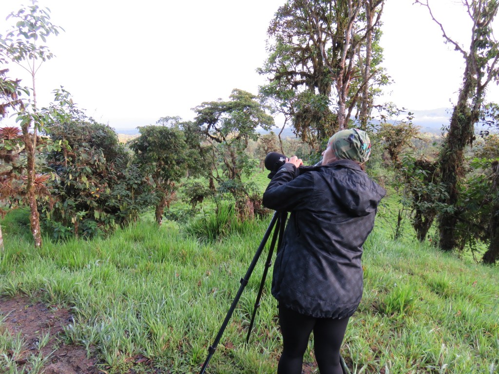 Wednesday started very early, about 4:45 a.m., because I had booked a birdwatching tour that would start before dawn. A birding guide, Sandy, and her driver David picked us up in her Chevy SUV in front of our lodge/cabañas at 5:20. Nathan and I were ready: him with a camera and me with my binoculars.