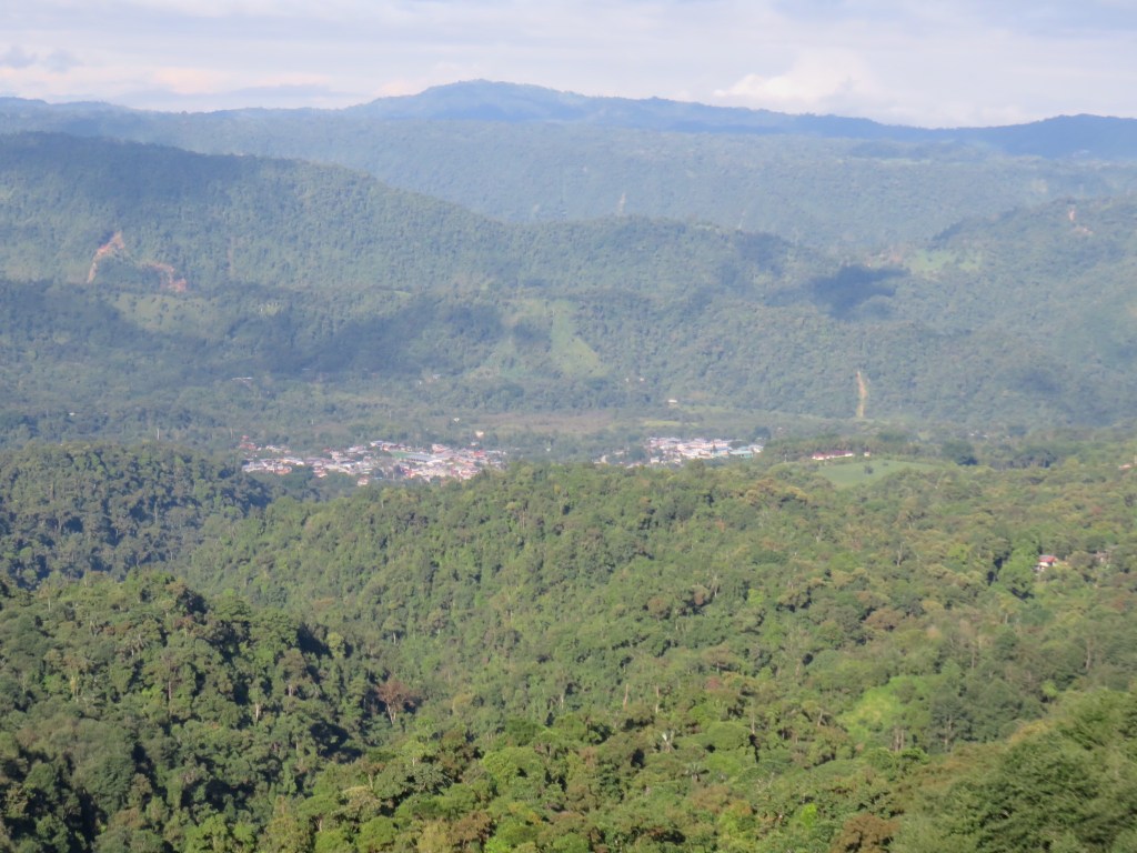 Next, Sandy and David took us to a birding site called San Tadeo, where the owner keeps fruit and nectar feeders stocked to attract hummingbirds, tanagers, and other birds. The owner also provided coffee, tea, fresh fruit, granola, yogurt, toast and hard boiled eggs for our own breakfast while we watched the birds. Between bites, Sandy identified all the birds that were coming to the feeders, including many of the numerous hummingbird species in Ecuador. And the stop was located on a hill overlooking the town of Mindo, so we had a beautiful view. It was another super experience.