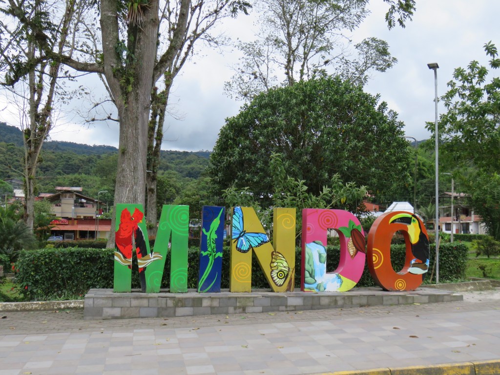 Nathan on one of Mindo’s streetsThe city park behind the Mindo signThe entrance to Cabañas Armonía, where we stayed