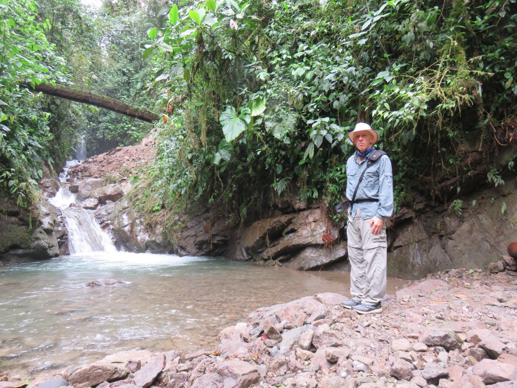 During the 90-minute walk, we saw numerous species of very small frogs, millipedes, fruit-eating bats, a kinkajou, small scorpions with bioluminescent spots, and a huge forest cockroach. No snakes, which suited me fine. It was a misty, still night and when the bats flew by, we could feel the breeze they generated and hear their wingbeats. It was a fun experience but not as great as the morning birdwatching. When the driver took us back into town at about 9:15, to our lodgings, it was raining.