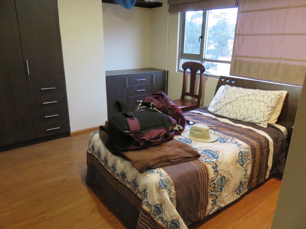 The traffic is busy and noisy, especially on this Friday night. After unloading my luggage, we walked to a nearby Supermaxi grocery store to pick up food and we each got ice cream cones too. Then we returned as it was getting dark, about 6 p.m. I was tired from the travel and high altitude, so after Nathan got a load of my laundry going in his combo washer/dryer machine, I went to bed early. I slept fairly well, despite the traffic noise that continued late into the night.