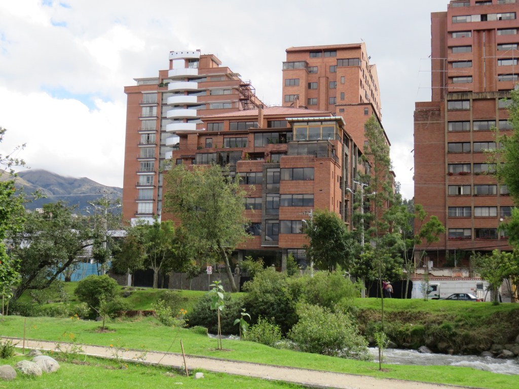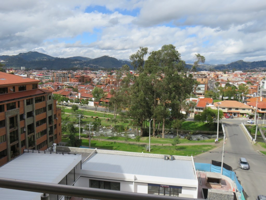 Nathan’s apartment building has the white balconiesThe view of Cuenca and Rio Tomebamba from his apartment My accommodations The Tomebamba River and the park that runs its length in Cuenca