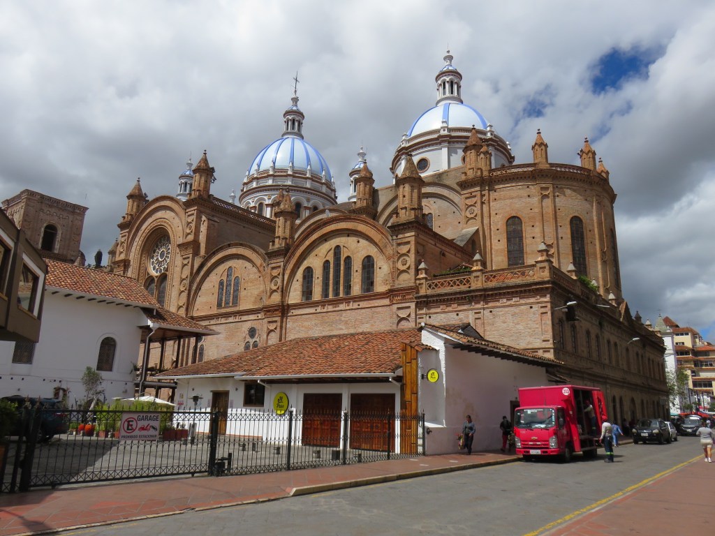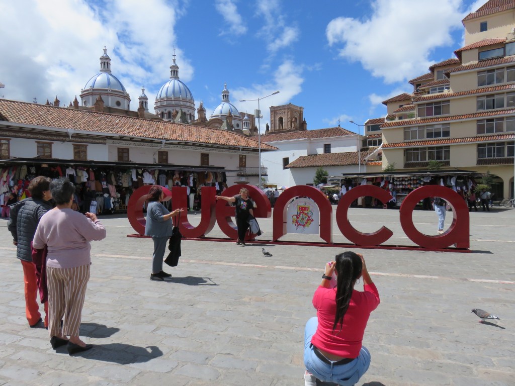 The flight to Cuenca is only 50 minutes long and the baggage claim is speedy and immediately next to the gate, so it was a fast and easy arrival. We exited the airport, walked across the street and caught a light rail train, the Tranvía, to the stop nearest Nathan’s apartment. It cost me $1 for the 15-minute ride and Nathan only 17 cents because of his Ecuadorian resident and 65+ age status. His apartment was a 10-minute walk from the stop, but it had me out of breath because of the 8,300 foot altitude. He lives on the 6th floor of an apartment building overlooking the Tomebamba River. His building has a 24-hour security guard, two elevators, and underground parking (although Nathan doesn’t have a car).