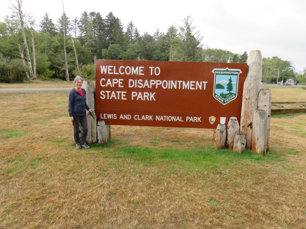 Today, on the last morning of this short road trip, we ate breakfast in a classy cafe in Seaview about a mile from the hotel. It was called 42nd Street Cafe and one of their specialties was a jam of marionberries, oranges, strawberries and walnuts that Dave really appreciated. I enjoyed a wedge of quiche with a side of fresh fruit. We took off from there toward Ilwaco and our first state park of the day, Cape Disappointment.