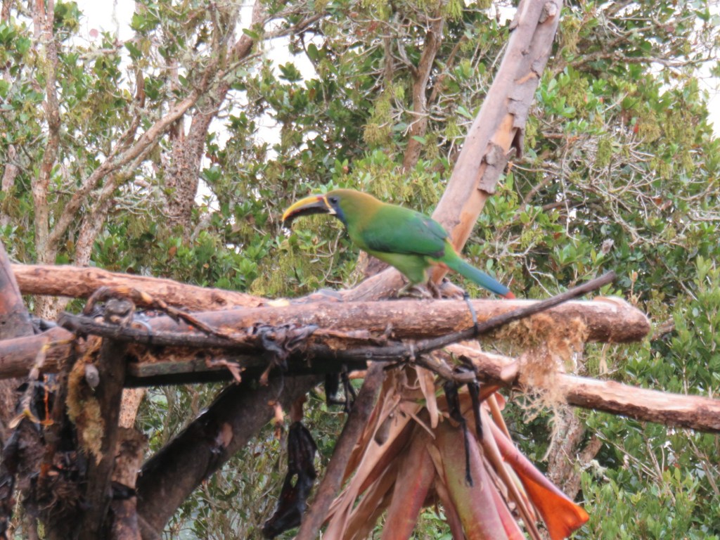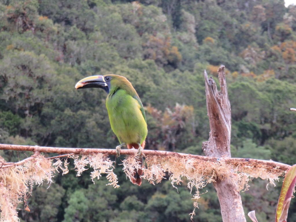 We woke up with the birds again this morning, nearly an hour before the 6am sunrise. The instant hot water head for the shower proved to be finicky for me, so I took a cold and minimal shower. It was sunny by 7am when we walked up the hill for breakfast. As we ate, our guide from Friday, Alex, came in after guiding a French couple and he greeted us warmly. We returned to our cabin and packed up in preparation for a 9am pickup by a driver to take us to our next location, Bosque de Paz.