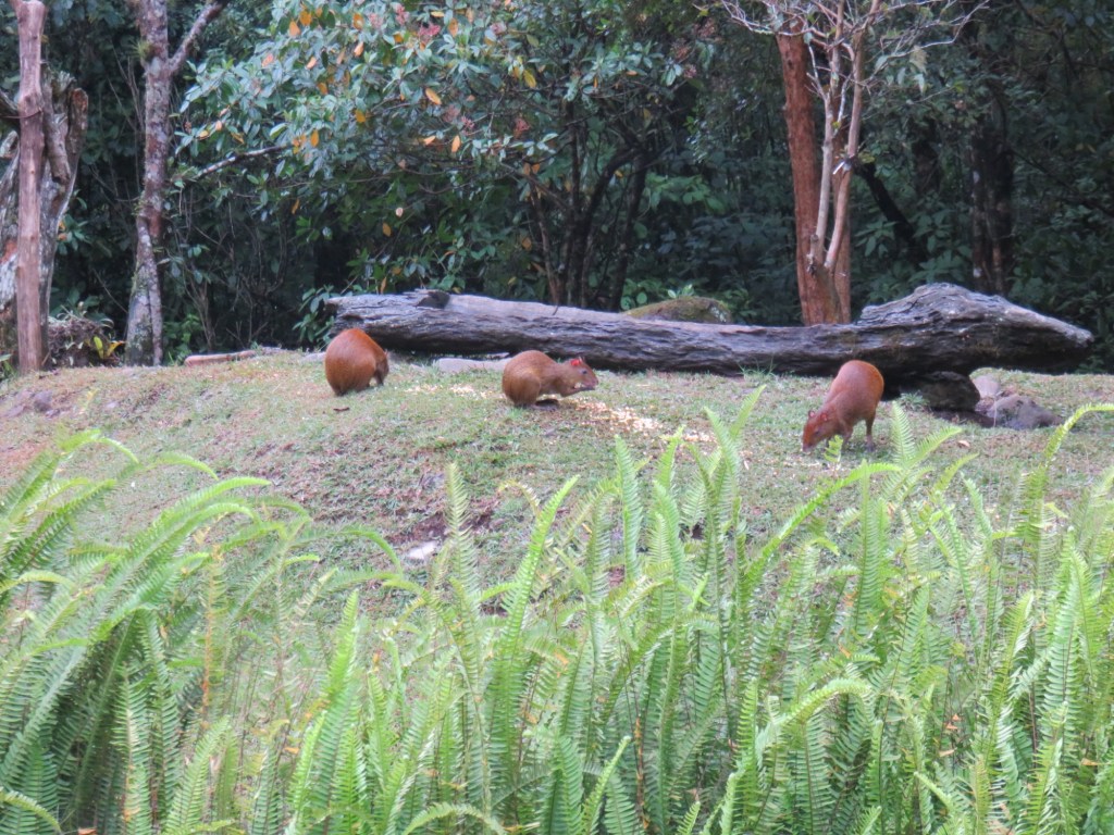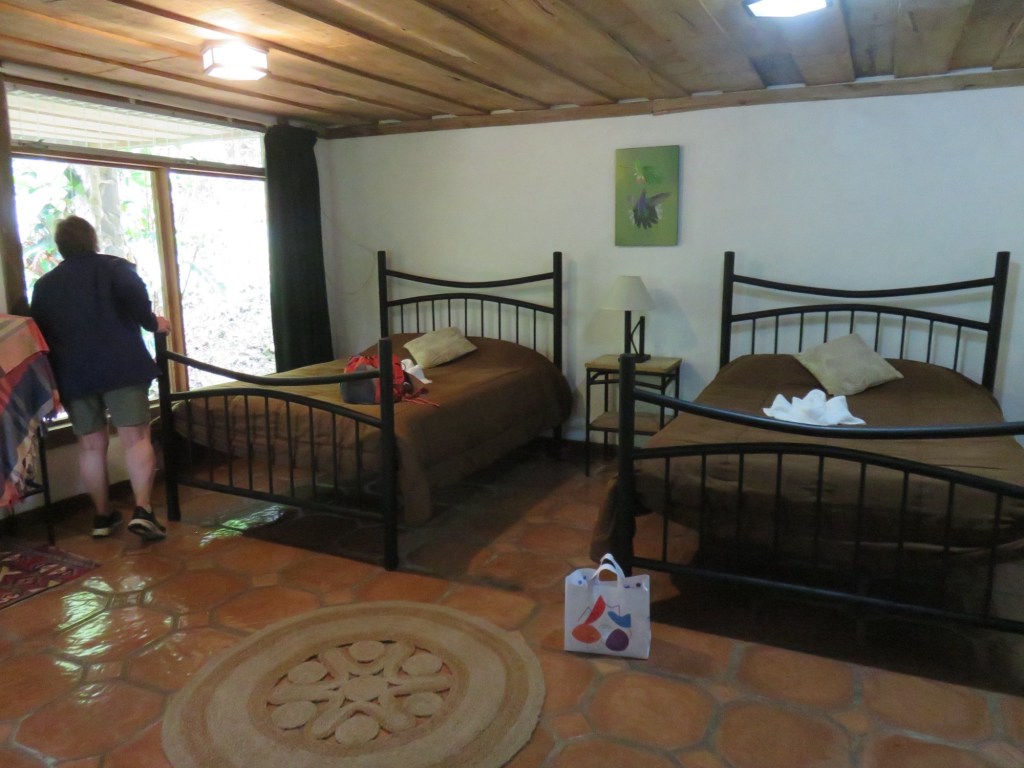 The nature reserve of Bosque de Paz is northwest of San José and is located in a cloud forest at lower elevation than San Gerardo de Dota. It’s a private reserve, lodge and restaurant located quite a ways from any city or town. The temperatures are warmer and it’s more humid, resulting in different vegetation, birds, and animals than where we had last been. We were greeted by the owner, an older man. Immediately after we got settled in the room, we went outside and saw new birds, bugs and some agouti animals. Then after dark, while we were waiting for a 6:30pm dinner, we saw fireflies and pacas, which are bigger animals than agoutis. Our room was nicer than at Miriam’s too.