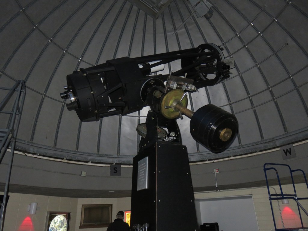 We first looked at Jupiter and its moons through the large 24-inch telescope. We also looked at a binary star named Mizar with a 10-inch telescope on the patio of the building. Then we looked at the moon with their 14-inch telescope. Troy was narrating, operating the telescopes, and answering questions through all of this. He also pointed out the International Space Station when it passed overhead, while we looked at it with our bare eyes, and a few other stars and planets. There was a cool wind blowing after sunset, so we were happy to go inside the dome and then, finally, in the classroom on-site.