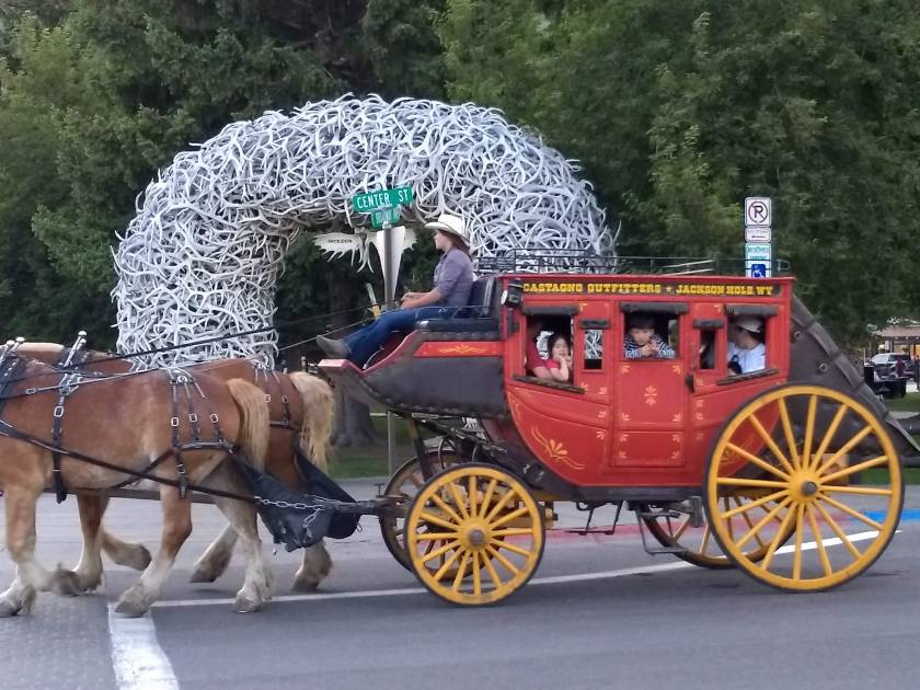 On Saturday, we saw a very different part of the park, driving north to the Mammoth Hot Springs. We experienced another “bison jam” on the way there, plus a road construction delay. Once at Mammoth, we drove along the Upper Terraces Drive and then walked to see the lower terraces. The warm wind and sun sucked the moisture out of us as we walked along the boardwalks and trails.