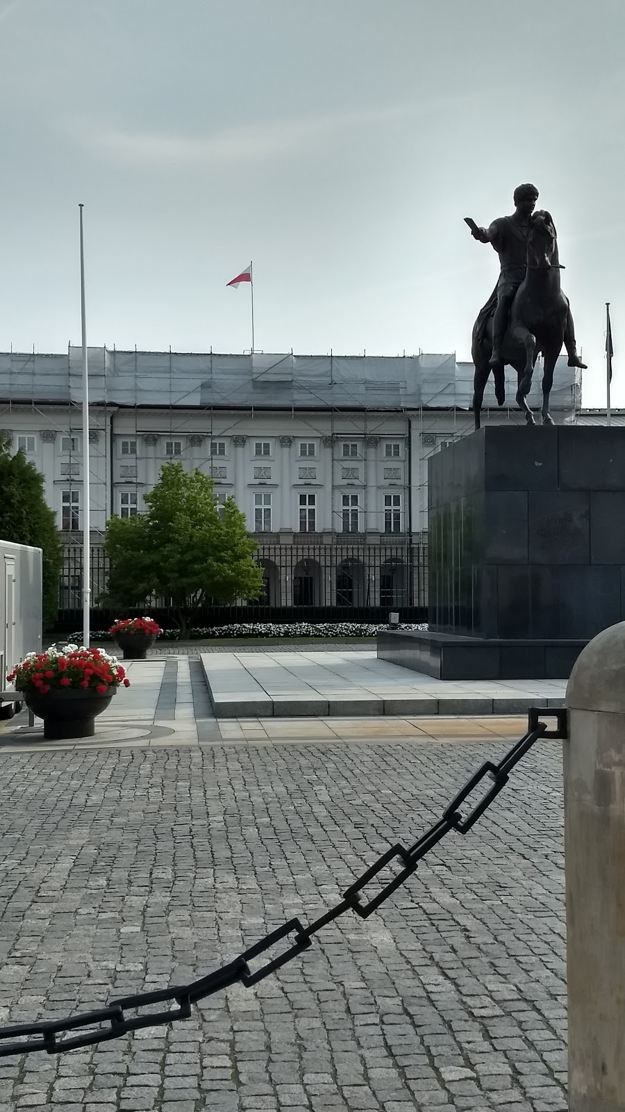A little after 9:00, when there were relatively few people on the streets, I decided to walk around to explore. My hotel, Apartamenty Zgoda, is in the central business area of Warsaw. There are many restaurants and stores in the area, but not open yet. The staff at the front desk gave me walking directions to Old Town, where I needed to be at 11:15 to meet the Angloville representative and other English-speaking volunteers for a tour of the city. The walk went down a lovely street with wide sidewalks and lots of shops.