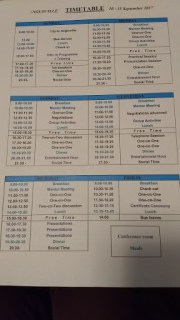 There was an introductory icebreaker at 5:30 in which we asked a Polish partner a few get-to-know-you questions and they asked us the same, then we introduced our partner to the group. Then we hand our first one-on-one session for 50 minutes. After that, dinner at 7:30. Dinner was baked chicken, boiled potatoes, and mixed vegetables, plus ice cream for dessert. All the time, we were talking to the Poles in English. After dinner, we could leave, but most stayed to continue talking. I left shortly before 10 pm to go to bed.